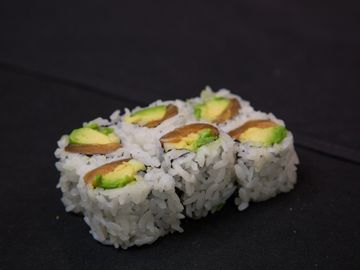 Marinated Red Tuna (Bluefin Tuna) & Avocado on a bed of rice.