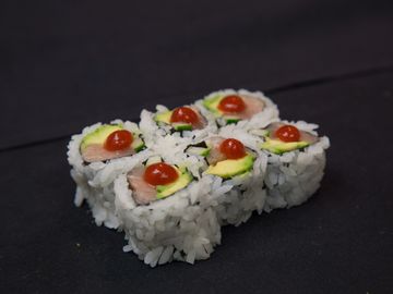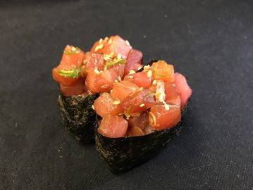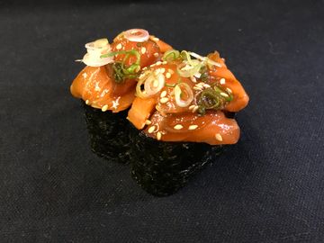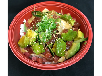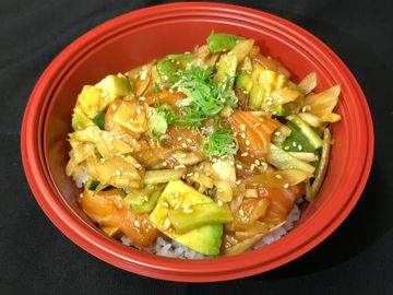 Marinated Salmon & Avocado on a bed of rice.